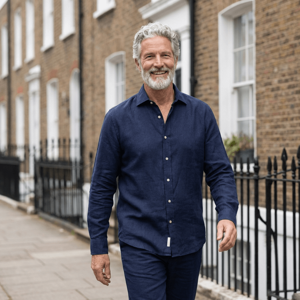 We offer a detailed size guide on each product page to help you find the perfect fit. Our shirts are cut to a ‘gentleman’s fit’ — loose-fitting but slightly tailored at the waist to remove excess bagginess.